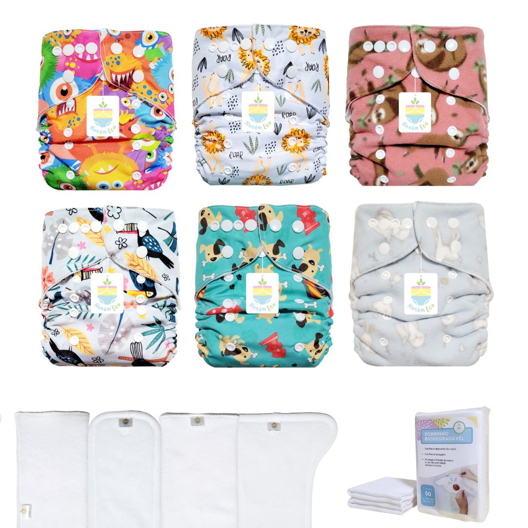 O enxoval inclui Fraldas Ecológicas com tamanho ajustável P / M / G / XG